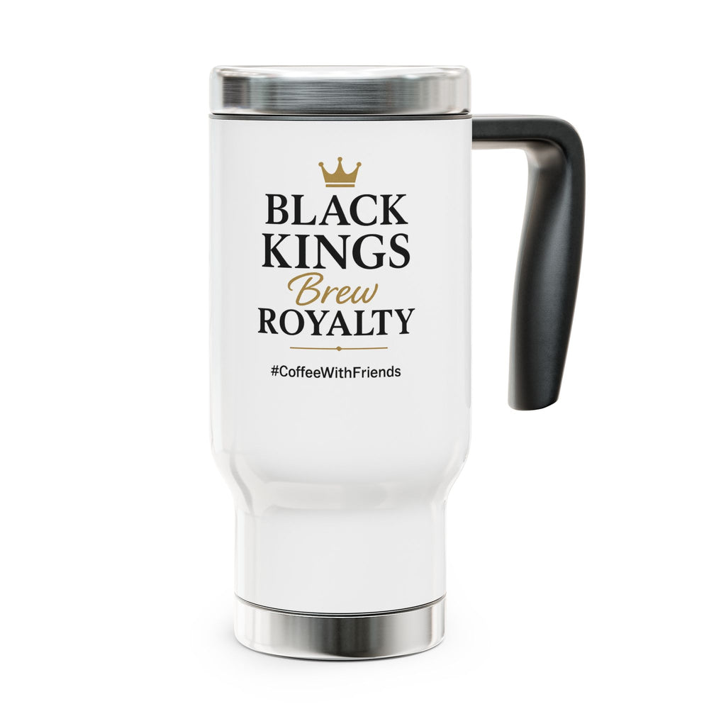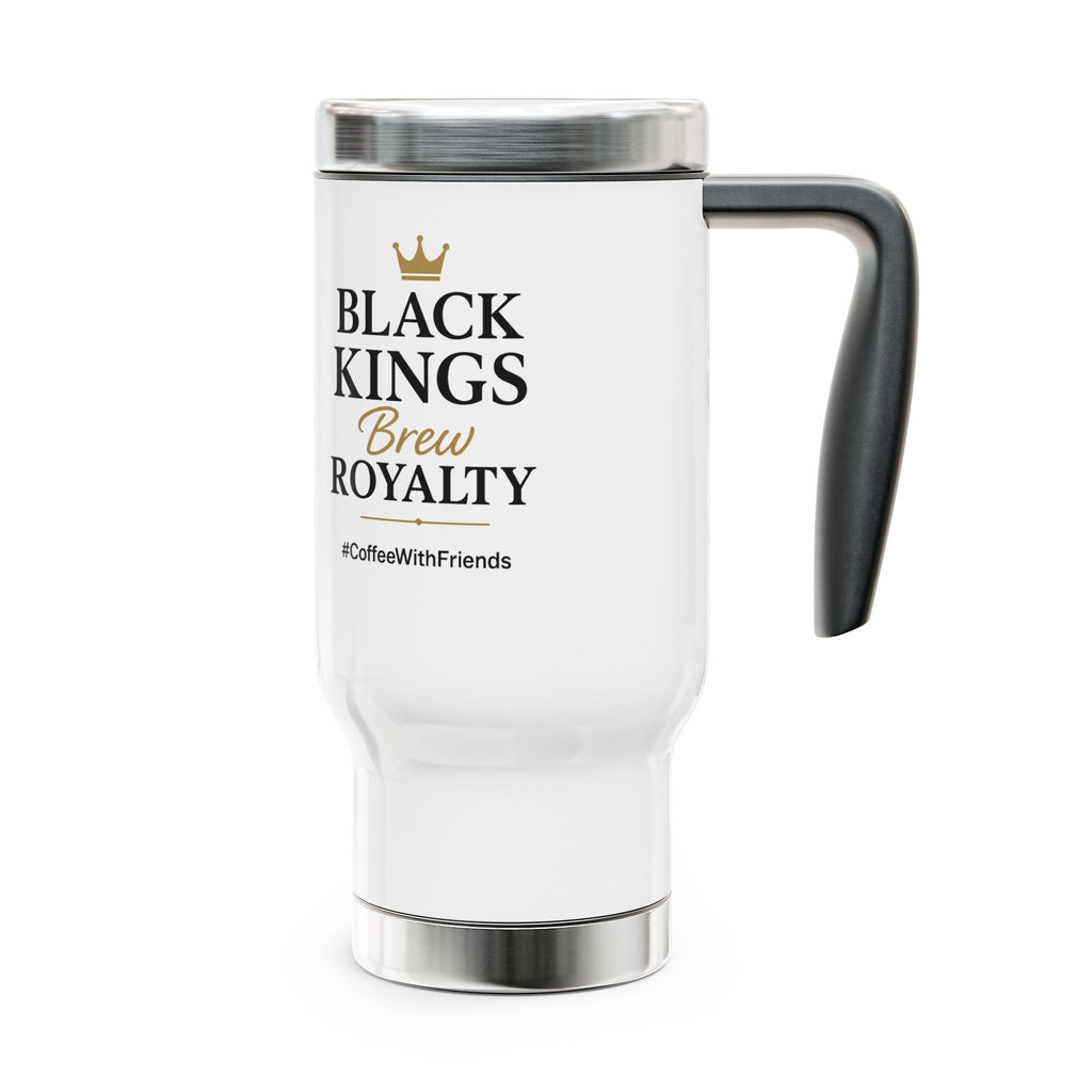 Carry yourself like royalty with every sip. ๐โ This 14oz stainless steel travel mug declares: Black Kings Brew Royalty. Designed with a sturdy handle and spill-resistant lid, it keeps your drink hot or cold while you stay moving through your day. With the gold crown design and #CoffeeWithFriends signature, itโs built for kings who grind with excellence.